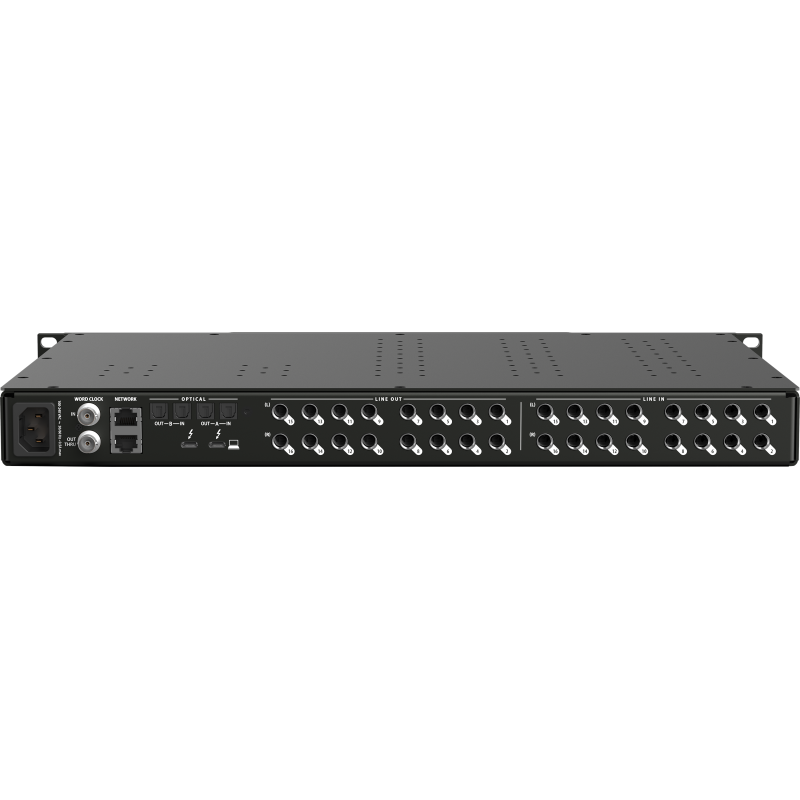 - Audio Outputs: 16 x 1/4-inch TRS line out (balanced, DC coupled)