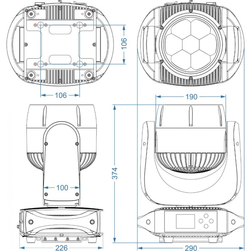 - Uiterst compacte en krachtige moving wash, uitgerust met 7x40W OSRAM® RGBL LED's