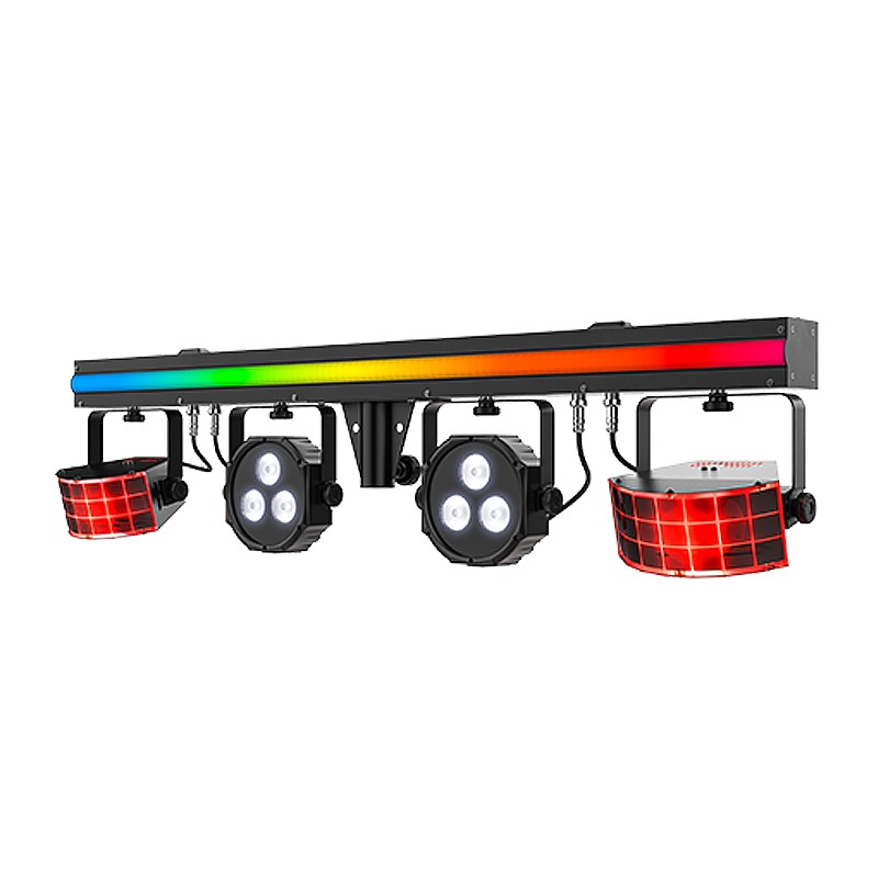 - 3-in-1 lichteffect met twee LED-derby's, LED-pars en een LED-strip, allemaal gemonteerd op één stang