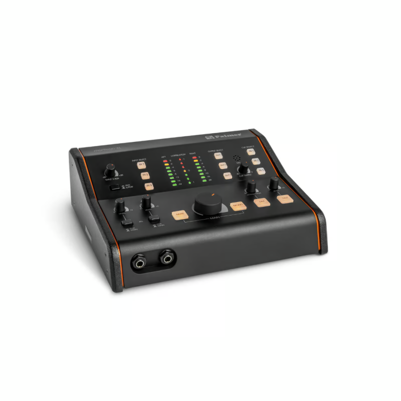De Palmer studio monitor controller beschikt over drie analoge stereo-ingangen, één S/PDIF-ingang en uitgangen voor drie monitorparen, elk met een eigen volumeregelaar voor niveaokalibratie. Er is ook een extra mono-uitgang met volledig bereik beschikbaar voor het aansluiten van een monomonitor of een subwoofer. Een exclusief hoogtepunt van de MONICON XL is de correlatiemeter, die het faseverschil tussen het linker- en rechterkanaal van een stereosignaal weergeeft. Dit maakt het mogelijk om snel en eenvoudig mono-compatibiliteitsfouten in mixen op te sporen. De controller kan ook worden aangepast aan uw persoonlijke werkstijl.