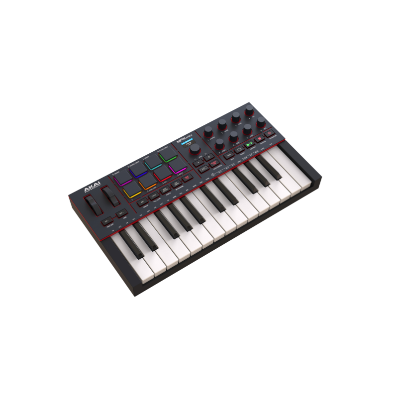 - Pads: 25 aanslaggevoelige minitoetsen met een bereik van 10 octaven omhoog/omlaag 8 toewijsbare 360° draaiknoppen voor tactiele geluidsvorming 8 aanslaggevoelige en drukgevoelige MPC-pads met RGB-achtergrondverlichting voor een responsief, expressief gevoel