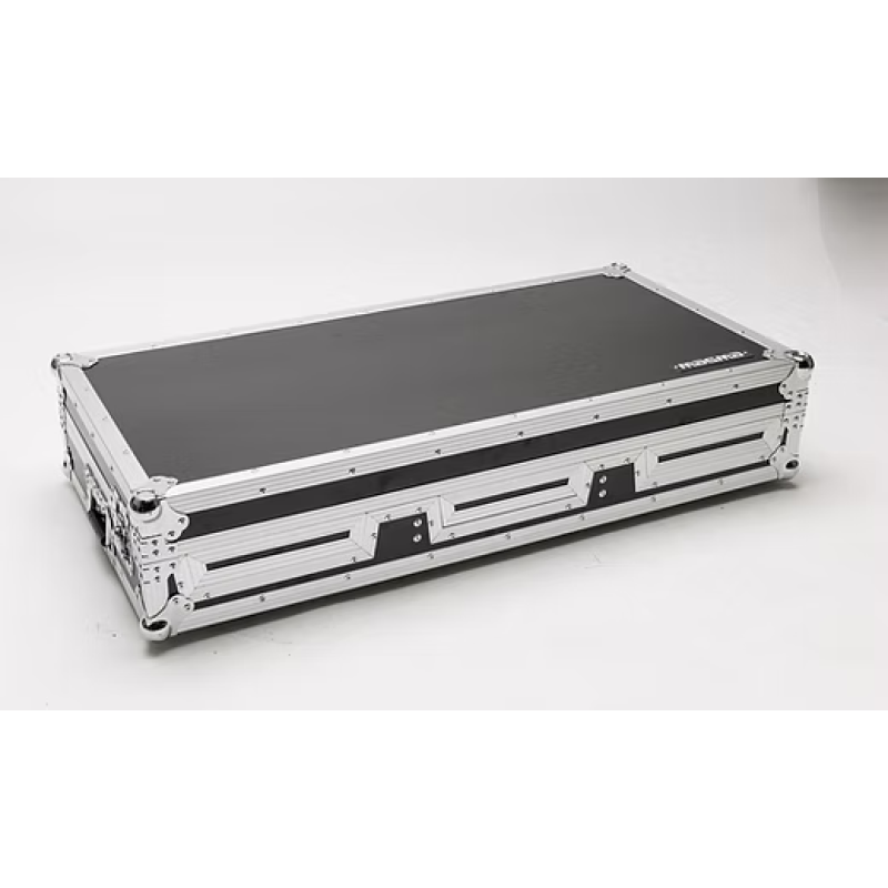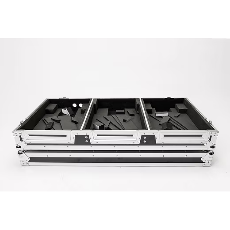 One Size fits all! Speciaal ontworpen voor de mobiele DJ om twee CDJ- of multimediaspelers en één 4-kanaals clubmixer in op te bergen. Elk compartiment voor cd-spelers en mixers is voorzien van extra schuimrubberen strips, zodat alle modellen van Pioneer DJ, Denon, Allen & Heath, Denon, Rane, Reloop enz. er perfect in passen. Deze koffer is gemaakt van 9 mm met vinyl gelamineerd multiplex, stevige aluminium profielen, heavy-duty vlindersloten en soepel rollende wielen en biedt ultieme bescherming voor mobiel gebruik onderweg.