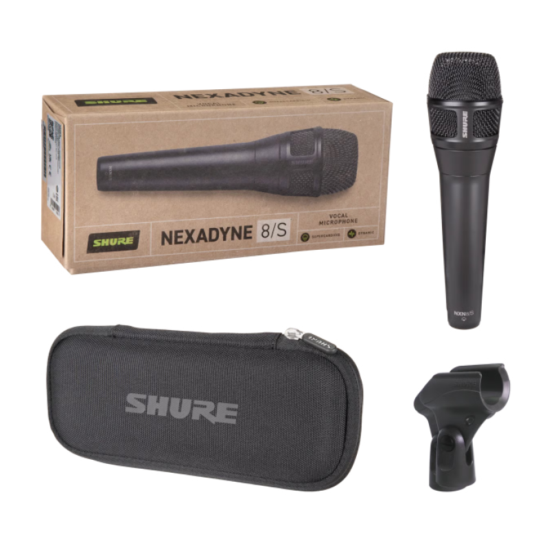 De dynamische zangmicrofoon Nexadyne™ 8/S is een cardioïde dynamische microfoon voor professionele zangoptredens. Nexadyne-zangmicrofoons zijn voorzien van de door Shure gepatenteerde transducertechnologie met dual-engine Revonic™, met twee precies gekalibreerde transducers die samenwerken om optimale prestaties te leveren. Het resultaat is een uitstekend presterende microfoonlijn waarin de allernieuwste akoestische signaalverwerking, uitzonderlijke cardioïde polaire patroonlineariteit en de beste onderdrukking van achtergrondgeluiden worden gecombineerd. Het supercardioïde polair patroon van de Nexadyne 8/S heeft focus en klinkt natuurlijk, waardoor de zang in elke ruimte tot zijn recht komt. De Nexadyne 8/S is voorzien van een zwarte afwerking en wordt geleverd met een microfoonklem en een etui.