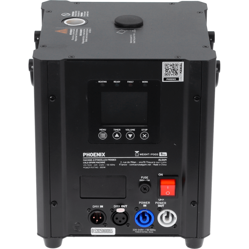 Voeg een vleugje magie toe aan uw evenementen! Creëer een spectaculair effect in slechts 4 minuten met deze 650W koude vuurwerkfonteinmachine. Met een effecthoogte tot 5 meter en bediening via DMX of afstandsbediening, verrijkt de Phoenix uw shows op een veilige manier - zonder hitte of rook. Compact (6 kg) en eenvoudig in gebruik, werkt hij met 200 g koud-vuurwerkpoeder (optioneel verkrijgbaar). Perfect voor bruiloften, concerten, toneelvoorstellingen en onvergetelijke feesten.