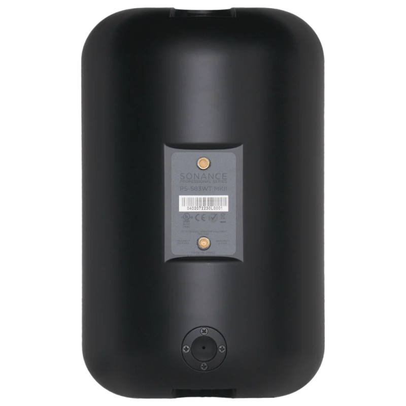 De Sonance PS-S83WT MKII opbouwwoofer is voorzien van een 8"-woofer met ultrahoge uitslag voor een krachtige bas. De weerbestendige behuizing met IP45-classificatie is uitgerust met de Fast-Mount®-beugel van Sonance en een kabelaansluiting aan de voorzijde, wat de installatie versnelt en zorgt voor een strakke uitstraling. UL1480A- en UL2239-certificeringen garanderen duurzaamheid en veiligheid.
