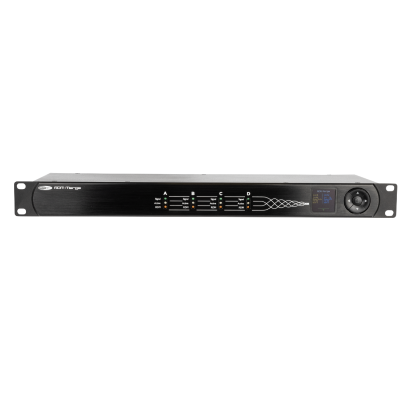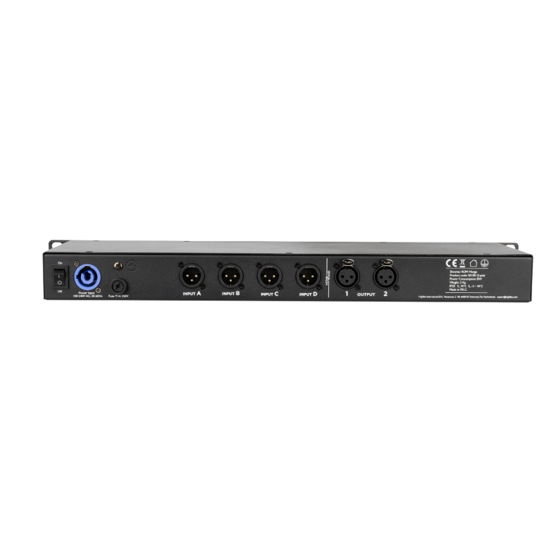 De Showtec RDM Merge is een professionele 4-naar-2 DMX-merger met volledige RDM-ondersteuning, ontworpen voor flexibel signaalbeheer in complexe verlichtingsopstellingen. Met vier DMX-ingangen en twee uitgangen kun je meerdere bronnen patchen en samenvoegen tot één of twee uitgangen, afhankelijk van de behoeften van de installatie. Elke uitgang kan worden geconfigureerd om specifieke ingangen te combineren, waardoor je volledige controle hebt over de signaalroutering.