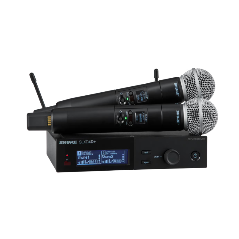 Het SLXD24D+/58 handheld draadloze systeem, met de dual-channel half-rack SLXD4D+ ontvanger en twee legendarische SM58® cardioïde dynamische microfoons, opent een nieuwe wereld van hands-free toezicht en beheer voor zowel ervaren vrijwilligers als professionele technici. De breed afstembare SLXD+ zenders en ontvangers blijven synchroon werken dankzij een speciale ShowLink® Ease controle link, voor draadloze uitmuntendheid waar dan ook. Beheer storingen, scan op nieuwe kanalen en update automatisch voor een storingsvrije transmissie. Monitor en configureer via een gekoppeld mobiel apparaat.