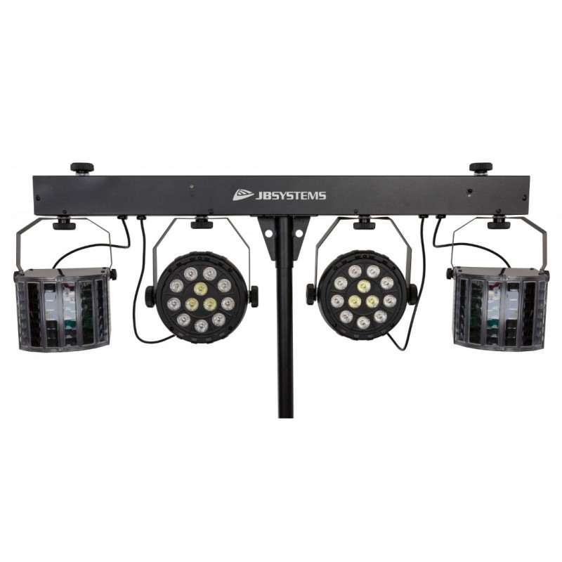 - Bestaat uit 2 RGBW Pars, 2 RGBW Derby's, een lichtstatief en transporttas