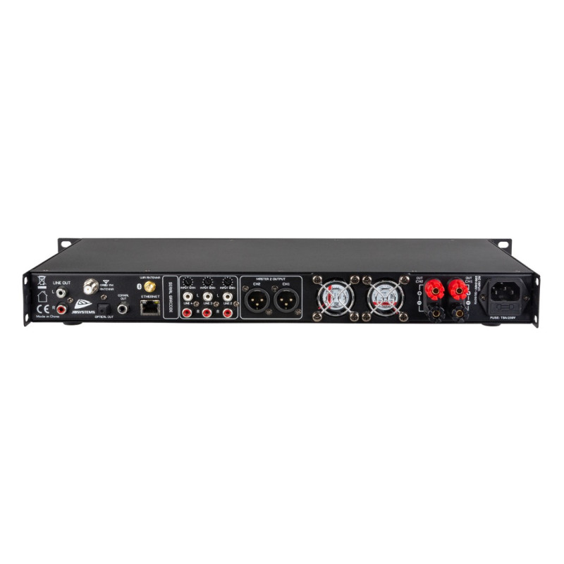 All-in-one audio solution with INTERNET RADIO + DAB/FM radio + SPOTIFY connect + USB player + BLUETOOTH + 2x 250W amplifier in a compact 19”/1U enclosure