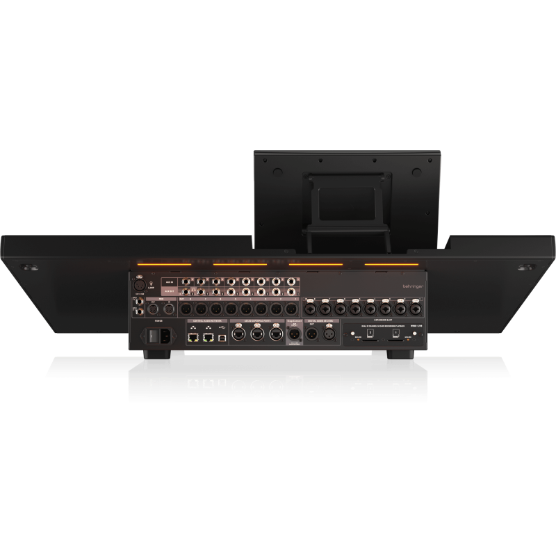 - Uitbreidingssleuf op achterpaneel kan optionele 64-kanaals audio-interface en netwerkuitbreidingskaarten hosten, bv. Dante, WSG, MADI ...