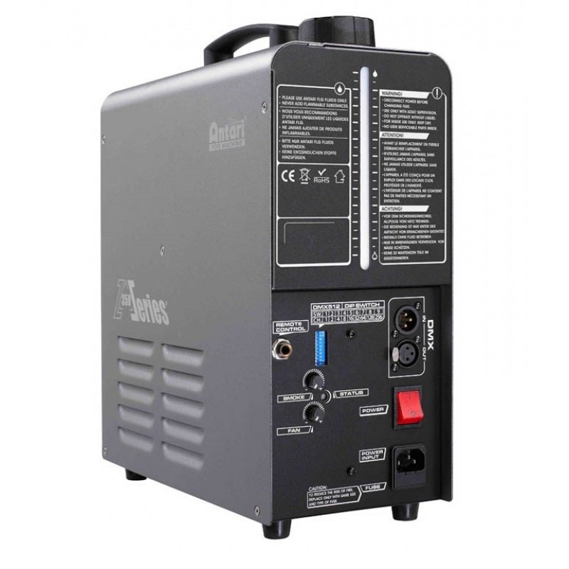 De Z-350 van Antari tot stand gekomen door jarenlange ervaring in Fazer ontwikkeling. De overname van de luchtpomptechnologie maakt niet alleen dat de Z-350 droge nevel genereert, maar ook een zelfreinigende functie heeft voor de heater. De Z-350 heeft een grotere buis van 1 diameter, waardoor het risico van verstoppingen aanzienlijk vermindert. Door het extreem laag vloeistofverbruik verleent een volle tank ( 1,3 liter) van de Z-350 meer dan 7 uur non-stop waasvorming bij maximale uitstoot. De nieuwe on-board DMX- interface maakt dat gebruikers een slimmere controle verkrijgen over de Z-350: Als een DMX signaal wordt ontvangen, start en begint de machine automatisch op te warmen. Wanneer het DMX signaal is uitgeschakeld, begint automatisch het zelfreinigend proces en gaat de fazer in slaapmode. De machine weegt slechts 8,7 kg wat hem gemakkelijk transporteerbaar maakt en eenvoudig op te stellen waar dan ook.